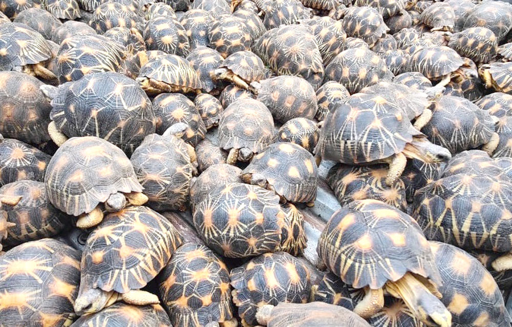 56 tortues appartenant à l’espèce Astrochelys radiata, plus connue sous le nom de tortue rayonnée de Madagascar, ont été découvertes dissimulées dans quatre valises enregistrées en soute. L’affaire débute lors du contrôle des bagages en soute. Les images issues du scanner révèlent des volumes organiques suspects dans quatre valises. Les vérifications permettent rapidement d’identifier les propriétaires : Jean Jores Ruphin et Nebaiota Omara Rakotoasimbola, tous deux de nationalité malgache. Conformément aux procédures, les agents des douanes demandent à l’exploitant aéroportuaire Ravinala de diffuser à plusieurs reprises un appel nominatif afin que les passagers concernés se présentent en salle de contrôle pour une fouille manuelle de leurs bagages. Aucun des deux ne répondra aux annonces.