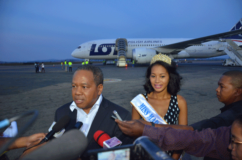Une grande nouvelle dans le secteur du tourisme ! Le plus grand des avions Boeing est arrivé hier à Ivato, avec des touristes Polonais. Durant leur séjour de 15 jours, ces derniers prévoient de visiter les attractions touristiques d’Antananarivo, suivant des circuits prédéfinis avec la société touristique polonaise Rainbow. Hier en fin d’après-midi, le ministre du Tourisme, Roland Ratsiraka, accompagné par miss Madagascar, Njara Windye Harris, est venu accueillir ce premier charter à Ivato. « Nous avons pu convaincre les opérateurs d’envoyer des touristes ici à Madagascar. Ce vol charter n’est qu’un début car d’autres viendront toutes les deux semaines, jusqu’au mois de mars 2017. Cette fois, ce sont des touristes plus âgés qui vont dépenser en moyenne près de 1000 Euros par tête. Ils ne visiteront qu’Antananarivo et les alentours. Mais d’autres touristes dans 15 jours et des plus jeunes lors des vacances de noël durant lesquelles, les circuits touristiques prévus passeront par les zones côtières. Nous avons également le Sommet de la Francophonie qui ramènera de nombreux touristes. Bref, le secteur se développe à merveille », a annoncé le ministre Roland Ratsiraka, hier à Ivato.