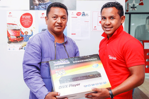La promotion fin d’année « tanteraka ny nofiko » d’Airtel continue de faire des heureux gagnants. Ils sont 8 gagnants à avoir reçu leur lot pour ce deuxième tirage et qui ont reçu leurs lots hier 2 décembre au Shop Airtel Galaxy Andraharo. Il s’agit de Maxi Randrianasolo, Veromanitra Raherisoa, Pierre Razafimahaleo, Javilaza, Marina Elie Ratianarimanga, Dieu Donné Andriamahazaka, Nicolas Rakotozafy et Jeannette Harisoa. Ces 8 gagnants de la deuxième semaine sont donc repartis avec plusieurs lots dont 5 chèques en Airtel Money, 1 fer à repasser, 1 téléphone portable ainsi qu’un lecteur DivX . « A travers ce jeu, airtel Madagascar offre la possibilité à tous ses abonnés de pouvoir passer les fêtes de fin d’année dans une ambiance festive », a déclaré Maixent Bekangba, directeur général d’Airtel Madagascar, lors de la remise de prix.