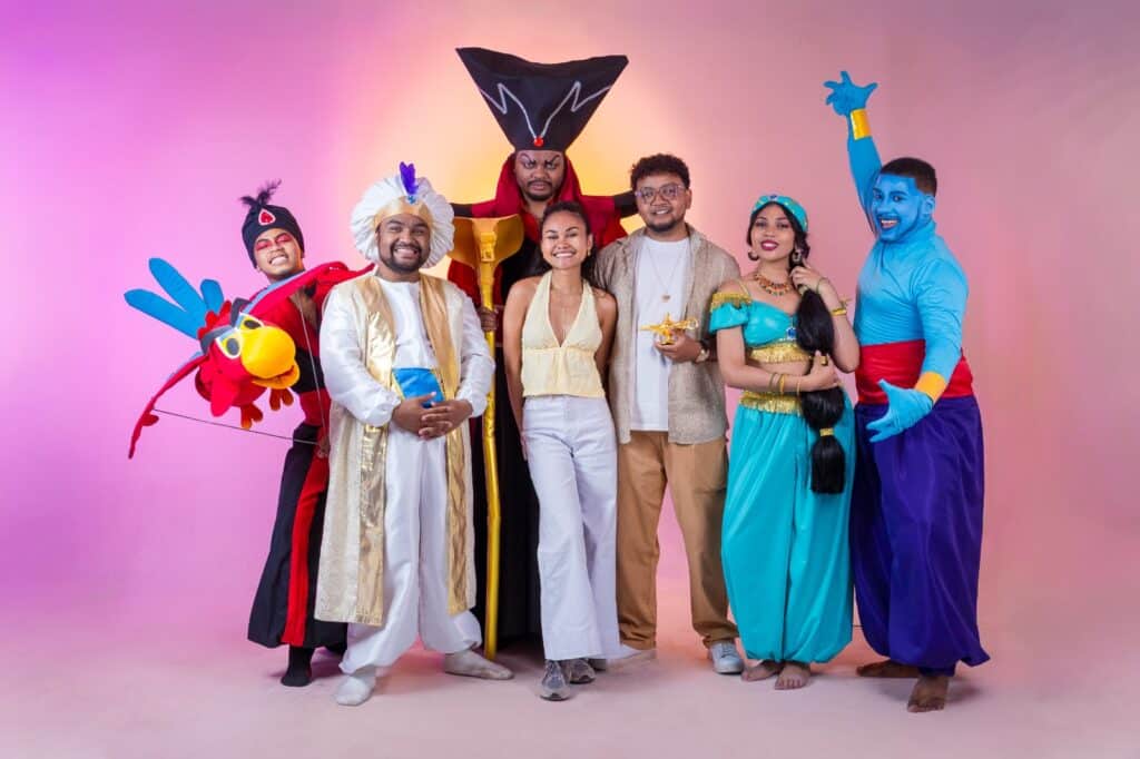 Ilan incarne Aladdin, Roxanne prête sa voix et sa grâce à Jasmine, tandis que Tsinjo promet de faire pétiller le rôle du Génie.
