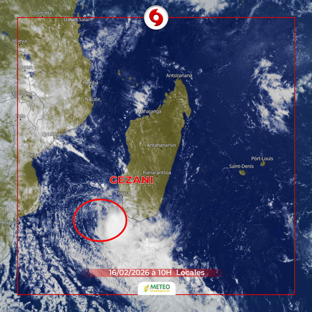 L’ouest de Madagascar est dans le collimateur de ce système qui a déjà fait des centaines de milliers de sinistrés et plus d’une trentaine de décès dans le pays. Après une phase d’éloignement, voilà que Gezani se rapproche progressivement des côtes sud et sud-ouest avec des vents soutenus et une mer de plus en plus dangereuse. Situé à environ 240 kilomètres à l’ouest du littoral à 9 heures locales, selon un bulletin cyclonique publié par la Direction générale de la météorologie (DGM), Gezani se déplace désormais vers le nord-est, à une vitesse modérée. Cette trajectoire ramène progressivement le système dépressionnaire vers la côte, en particulier dans le district d’Ampanihy Andrefana. Les services météorologiques indiquent que le cyclone aurait pu s’en approcher davantage en fin de journée ou dans la nuit d’hier, avant de s’en éloigner définitivement de nos côtes. Même affaibli, le système reste porteur de vents violents près de son centre, avec des rafales pouvant dépasser les 100 km/h en mer. Sur terre, les zones côtières du sud et du sud-ouest pourraient subir des vents avoisinant les 60 à 70 km/h. Cette situation a conduit au maintien d’une alerte rouge dans le district d’Ampanihy Andrefana, tandis que les districts de Beloha et Tsihombe restent placés en alerte jaune.