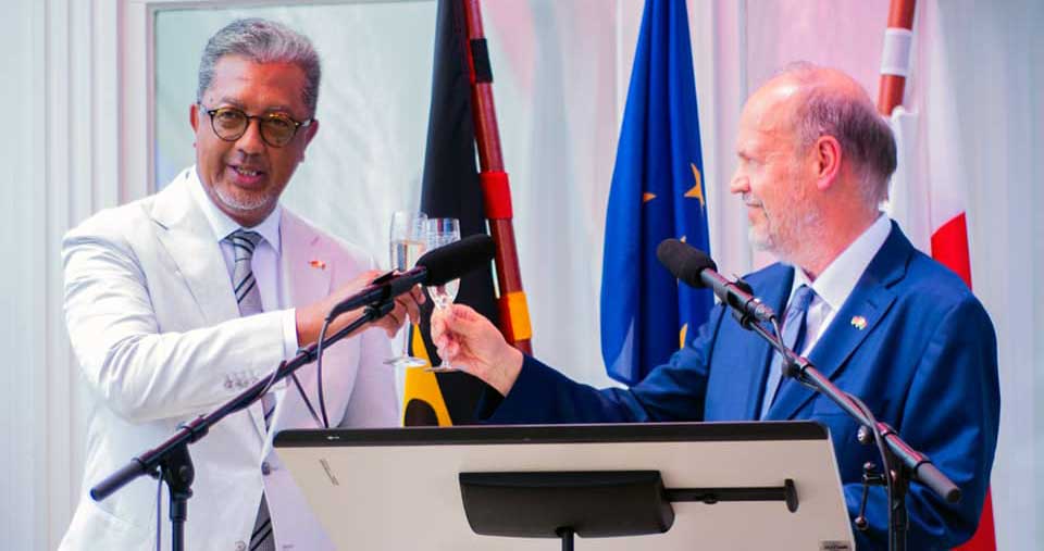 Les relations entre Antananarivo et Berlin sont au beau fixe. À l’occasion de la célébration de la fête nationale allemande, hier, à Ambatoroka, le ministre des Affaires étrangères, Richard Randriamandrato, a affirmé que « Madagascar et l’Allemagne ont des relations diplomatiques courtoises et sans complexe ». Une relation qui date, d’ailleurs, de plusieurs décennies et qui s’améliore au fil des années. Actuellement, l’Allemagne intervient sur plusieurs projets liés au développement, notamment dans le développement de la décentralisation dans le pays avec différents programmes comme le ProDéCID et PDCID. Le gouvernement allemand soutient des collectivités décentralisées, essentiellement les communes, pour fournir des appuis techniques et financiers en vue de leur autonomisation. « Nous sommes conscients de la qualité des contributions de l’Allemagne en matière de développement que ce soit sur le plan bilatéral ou à travers l’Union européenne », a soutenu, hier, le ministre des Affaires étrangères, Richard Randriamandrato à l’occasion de la fête allemande. Il n’a également pas manqué « d’exprimer, au nom du président de la République Andry Rajoelina, ses félicitations au peuple allemand et de réitérer la volonté du gouvernement malgache à raffermir davantage la coopération avec l’Allemagne ». Une volonté qui a été, d’ailleurs, partagée par l’ambassadeur allemand, Michael Häusler, dans son discours. Le 32e anniversaire de la Journée de l’Unité Allemande – le Tag der Deutschen Einheit – devenue fête nationale allemande, a été célébrée hier à la Villa Berlin, Ambatoroka.