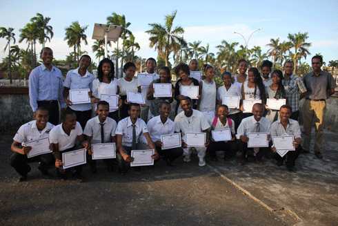 Les jeunes pairs éducateurs du kiosque TAMAGA et les formateurs.