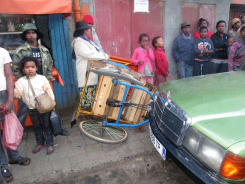 Nisehoana lozam-pifamoivoizana indray teto Antsirabe. Cyclo posy nijanona amoron-dalana no voafakana- fiara kely iray.