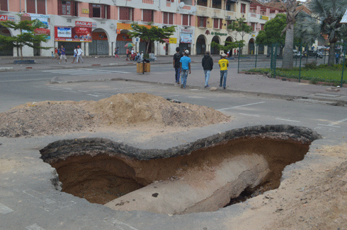 L’un des gros trous à l’Avenue de l’Indépendance.