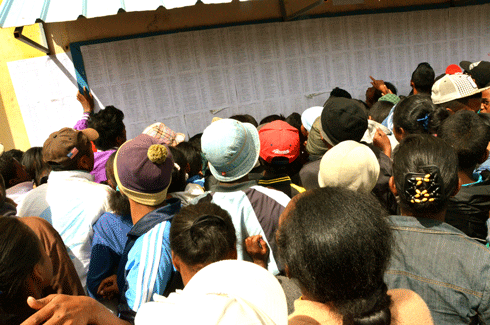 On se bouscule toujours autour du tableau d’affichage à la sortie des résultats d’examens. Photo d’archives.