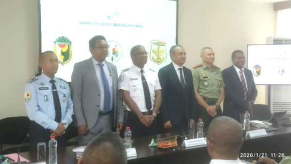 La date du 21 janvier 2026 marque un tournant important dans l’histoire de la Banque centrale de Madagascar (BCM). Deux conventions majeures ont été officiellement signées entre les Forces de défense et de sécurité (FDS) et le gouverneur général de la Banque centrale, portant sur le renforcement du dispositif de sécurité de cette institution stratégique. La première convention concerne la sécurisation des sites de la Banque centrale sur l’ensemble du territoire national. Outre le siège d’Antaninarenina et le site de Mamory Ivato, onze implantations régionales sont concernées. Ce partenariat, initié en 2011 puis renouvelé en 2021, fait ainsi l’objet d’une nouvelle actualisation en 2026 afin de s’adapter aux enjeux sécuritaires actuels. La seconde convention porte sur l’escorte des fonds transportés par voie routière. Désormais, cette mission est confiée à la Police nationale, à travers son Unité spéciale d’intervention, alors qu’elle relevait auparavant de la Gendarmerie nationale. Les documents ont été paraphés par le gouverneur de la Banque centrale, Aivo Andrianarivelo, le chef d’État-major des armées, le général de corps d’armée Pikulas Démosthène, le commandant de la Gendarmerie nationale, le général de division Nonos Mamelison, ainsi que le directeur général de la Police nationale, le commissaire divisionnaire Ravony Jean Victor Tsaramonina. Les FDS assureront les ressources humaines et l’expertise en matière de sécurité. En contrepartie, la Banque centrale de Madagascar s’est engagée à contribuer à la réalisation d’infrastructures au bénéfice des Forces de défense et de sécurité.