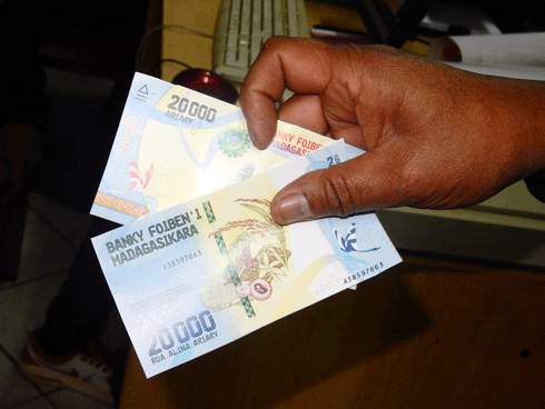 A la fin de ce mois de juillet, un salarié qui touche 200.000 ariary rentrera chez lui seulement avec dix billets de banque. Une maigre liasse. Ce sera l’un des premiers impacts visibles de ce changement de billets décidés par la Banque Centrale, puisque le salaire de 200 000 ariary se réduira dorénavant à dix billets de 20 000 ariary. En effet, la Banque Centrale a annoncé hier, lors d’une conférence de presse que « la première émission aura lieu le 17 juillet 2017 pour les coupures de 20 000, 10 000, 5 000 et 2 000 ariary ». Les autres nouveaux billets de 1 000, 500, 200 et 100 ariary seront pour leur part mis en circulation le 18 septembre 2017.