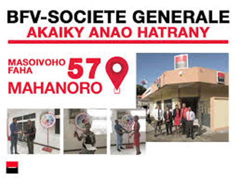C’est dans cette démarche que la BFV-SOCIETE GENERALE a cette année ouvert une nouvelle agence à Mahanoro dans le quartier d’Ambalamangahazo. Toute l’équipe de l’agence, sous l’égide de son Directeur Innocent RALAMBOMANANA, y met en avant son expertise, son professionnalisme, des solutions souples, des délais de décision courts ainsi qu’une large gamme de produits et services bancaires à la pointe de l’innovation. Comptant à ce jour 57 agences, trois Espaces « Premier », quatre espaces entreprises, la BFV-Société Générale continuera d’accueillir ses clients dans les meilleures conditions avec une musique de fond et des écrans d’animations diffusés dans toutes les agences. Pour récompenser les clients, l’agence met en place des animations pour permettre à ses clients de gagner des lots pour toute ouverture de compte durant trois mois à compter du 4 juillet.