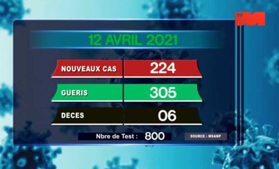 Le récapitulatif indique un cumul de 28 765 cas confirmés, 24 416 guérisons et 156 363 tests effectués depuis près de onze mois, du 23 mars 2020 au 12 avril 2021.