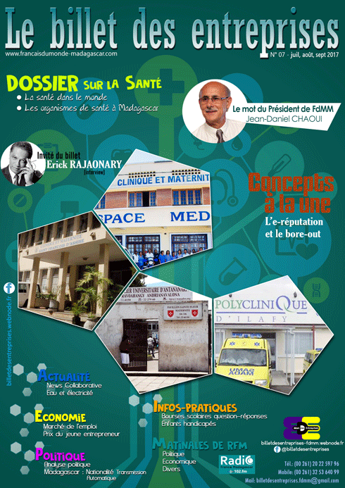 Jean Daniel Chaoui (JDC) : Le billet des entreprises est le magazine de Français du Monde Madagascar. Il a un peu plus d’une année d’existence. Nous venons de sortir le n°7 à la mi-septembre. C’est un magazine numérique gratuit, de plus de trente pages. Il est diffusé sur une liste propriété de Français du Monde Madagascar. Il peut être communiqué gratuitement. Il suffit d’en faire la demande sur la page Facebook du « Billet des entreprises ».
