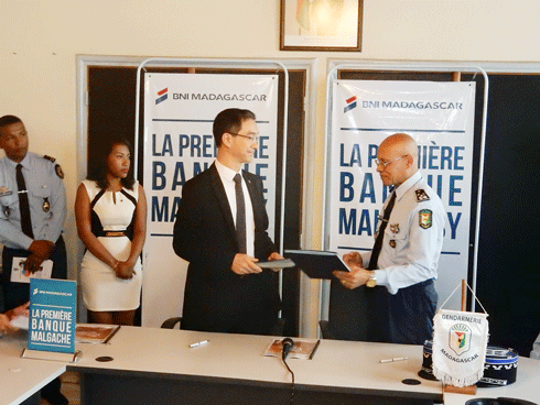 La BNI Madagascar et la Gendarmerie Nationale signent un partenariat historique. C’était hier, lors d’une cérémonie qui a vu la présence du Général de Division Girard Randriamahavalisoa, Secrétaire d’Etat chargé de la Gendarmerie et du DG de la banque Alexandre Mey. Il s’agit d’une convention qui offre les meilleurs services de banque au quotidien à des tarifs préférentiels à tous les éléments de la Gendarmerie, sur toute l’étendue du territoire. Ce partenariat permet à la BNI Madagascar d’accompagner la gendarmerie d’une part, dans l’amélioration du bien-être de son personnel, d’autre part, dans la formation de ses agents. Sur ce point, d’ailleurs, BNI Madagascar a déjà offert un don d’outils didactiques à l’Ecole de la Gendarmerie d’Ambositra lors de la dernière cérémonie de présentation des élèves au drapeau. En outre, d’autres domaines de collaboration sont également définis dans la Convention dont le mécénat de l’orphelinat et d’autres activités qui rentrent dans le cadre de l’exécution des missions de l’Armée. Plus concrètement, à travers le PACK MPIASAM-PANJAKANA, chaque agent de la Gendarmerie Nationale, bénéficiera des avantages d’une banque moderne entre autres : un compte de dépôt, un compte Mobile MVola, des moyens de paiement, des outils de gestion de compte à distance, des produits d’assurances et des crédits à la consommation et immobiliers à des taux très avantageux. En outre, ils bénéficieront du service Mobile Banking, Bank to Wallet et Wallet to Bank récemment lancé par BNI Madagascar et qui est totalement gratuit.