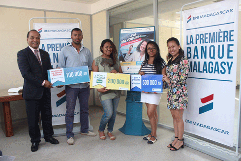 Banque officielle partenaire du Salon de l’Auto 2017, la BNI Madagascar a organisé une tombola qui a bien évidemment, fait des heureux. Lesquels ont reçu hier leurs lots. Il s’agit, en l’occurrence de Niaina Rakotoarison qui a gagné un bon d’achat de 500 000 ariary chez Quick Lane, d’Oriane Rananja qui a décroché un bon d’achat de 200 000 ariary chez Telma et enfin de Mahery Ratsiferana qui a eu droit à une somme de 100 000 ariary pour une ouverture de compte épargne à la BNI Madagascar. .