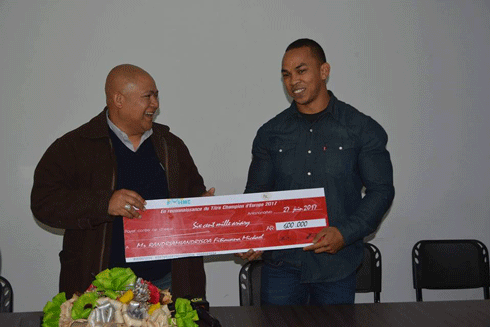 Après l’effort, le réconfort. Une semaine après son sacre au Championnat d’Europe disputé en Espagne, Michaël Fitiavana Randriamiandrisoa a été primé. C’est le président de la fédération malgache d’haltérophilie, de musculation et de culturisme, Harinelina Randriamanarivo qui a remis le chèque de 600 000 Ariary au nouveau champion dans la catégorie classique junior, hier, au siège du comité olympique à Ivandry. « Ce résultat justifie que la commission et la fédération travaillent d’arrache-pied. 12 ans après que cette discipline a été vulgarisée, voilà la Grande Ile qui brille sur la scène internationale » a expliqué le président de la fédération. Pour en revenir à la victoire de Tsilavina, un résultat qui n’est pas le fruit du hasard, mais du travail de longue haleine. Pour une première participation à une compétition internationale, il s’est distingué parmi les nombreux bodybuilders. « Mes points forts étaient la qualité musculaire et le bas du corps. Je tiens à signaler que le niveau des athlètes malgaches n’est pas loin de ce que j’ai vu en Espagne, mais, ce qui manque est le moyen financier » a-t-il expliqué. A 22 ans, Tsilavina est une relève prometteuse de cette discipline. Lui qui espère percer le circuit professionnel au futur. Après l’Espagne, dans moins de quatre mois, la commission bodybuilding au sein de la FMHMC dirigée par Vernier Georges aura un grand défi, les championnats du monde de bodybuilding en Mongolie. La préparation bat actuellement son plein pour la détection des représentants malgaches.