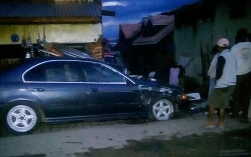 Omaly hariva tokony ho tamin’ny enina ora teo, no nisehoan’ilay lozam-pifamoivoizana. Nifaoka tsenan’olona ny fiara BMW izay nisy sainam-pirenena nipetraka eo anoloany (cocarde). Olona roa no naratra mafy vokatry ny fifandonana. Tsy tafajanona teo aza ilay fiara fa mbola nifatratra tany amin’ny fiara tsy mataho-dàlana iray ihany koa. Rehefa izany dia nitsoaka ireo olona efatra tao anatiny izay tsy fantatra hoe mamo ve sa tsia. Nisy nahita ny tavan’ny sasany tamin’ireo nitsoaka ary ireo no nilaza fa manampahefana ny sasany amin’izy ireo. Efa nanomboka maizina ny andro omaly tamin’io fotoana io ary vetivety foana dia tsy hita izay nanjavonan’ireo olona tao anatin’izany. Ny olona teo amin’ny manodidina no nifanome tànana tamin’ny famonjena ireo naratra. Nitaraina ny olona tamin’ny zava-nitranga, satria efa tena tery ny làlana eo Ankadindrantombo kanefa mbola sahin’ny mpamily ihany ny nandeha mafy. Tonga teny an-toerana ny mpitandro ny filaminana nijery ny zava-nitranga ary nanome toky ny hikarohana faran’izay haingana ny tompon’andraikitra. Tsy tokony hananosarotra rahateo izany, satria ny laharan’ny fiara izay navelan’ireo olona teo dia azo hanamarinana izany eo anivon’ny sampan-draharaha miandraikitra izany.