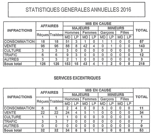 Bilan 2016 : 193 sous MD dont six mineurs
