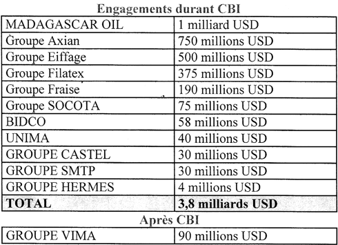 Plus que positifs. Le ministre Chabani Nourdine devait d’ailleurs confirmer ce retour de confiance en déclarant que « si on a réussi à convaincre les investisseurs à s’engager pour des milliards de dollars d’investissements, c’est que beaucoup de travaux ont été faits par l’ensemble de l’exécutif malgache, conformément aux directives du Président de la République ». En tout cas, les résultats de ces efforts sont plus que positifs puisque les engagements annoncés par le secteur privé à Paris dépassent les 4 milliards de dollars. Dont 3,8 milliards de dollars durant la CBI et 90 millions de dollars après. Les différents investissements annoncés concernent surtout la mise en place d’infrastructures, dont celles relatives à l’énergie hydroélectrique, entre autres. Ces annonces sont la confirmation d’une vision partagée, en réponse au manque d’infrastructures dans le pays, et elles ont été faites par des acteurs qui sont déjà présents à Madagascar dans plusieurs domaines.