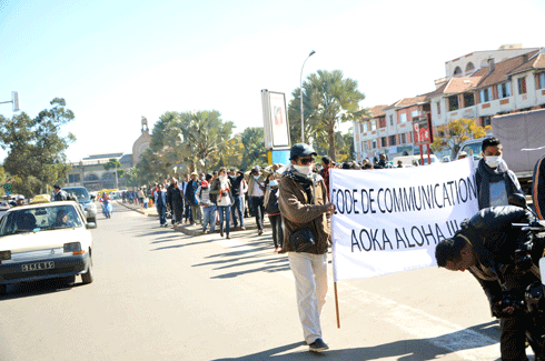Les journalistes disant « Aok’aloha » au code de la Communication (photo d’archives) QFJ/20.10 Journalistes