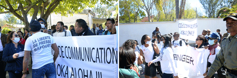 Grande marche. En tout cas, malgré les contestations, l’adoption de cette loi aura quand même lieu ce jour à Tsimbazaza. Le lobbying effectué hier a échoué. Les membres de la Commission Communication, Information et Relations avec les Institutions au niveau de l’Assemblée nationale qui ont rencontré hier une délégation des journalistes, ont rejeté en bloc les revendications de la presse. Faut-il rappeler que le projet de Code de la Communication médiatisée a été discuté en commission plénière hier. Les débats se sont déroulés en présence des représentants du Ministère de la Communication dirigés notamment par son Secrétaire général, Guy Laurent Ramanankamonjy. De leur côté, les journalistes ont organisé comme prévu, une grande marche qui a débuté devant la stèle de l’Ordre des Journalistes à Soarano jusqu’au palais de Tsimbazaza. De nombreux journalistes, issus de tous les organes de presse de la capitale, ou enfin presque, ont participé à la manifestation. Le « Diabe » s’est déroulé dans le calme et sans incident. A signaler la présence des éléments de l’Emmoreg qui ont quadrillé les manifestants sans avoir eu recours à des coups de gaz lacrymogènes. Arrivés à l’Assemblée nationale vers 11h30, les journalistes ont dû forcer l’entrée pour accéder à l’intérieur du palais. Après 3h30 d’attente, les membres de la Commission Communication assistés par des membres du Bureau permanent dont Siteny Randrianasoloniaiko et Mahazoasy Freddie ont finalement accepté de rencontrer une délégation des journalistes.