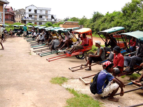 Autocollant. Il existe actuellement 500 tireurs de pousse recensés dans la ville d’Ambositra. Soit 1 pousse / 70 habitants. Ces tireurs de pousse ne sont pas seulement d’Ambositra, mais aussi d’Antsirabe et d’Ambatolampy. Un métier qui nourrit bien son homme à condition que l’on s’y mette, avec en moyenne, 5 000 Ar à 7 000 Ar de recette nette par jour. Pour séparer le bon grain de l’ivraie, d’ici peu, les pousses-pousses d’Ambositra se reconnaîtront par leur autocollant, a fait savoir un responsable de la municipalité. Ainsi, les tireurs de pousse recevront-ils une formation sur le code de la route dispensée par la police nationale. La plupart de ces tireurs de pousse louent leur véhicule à des patrons moyennant 1 000 Ar par jour.