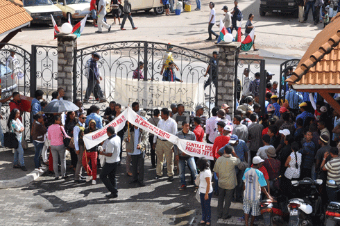 Un début de semaine mouvementé pour la Commune Urbaine d’Antananarivo (CUA). Après les manifs des marchands à la sauvette au cours de la semaine dernière, c’est maintenant le tour des employés de courte durée (ECD) de se mettre en grève. C’est pour contrer le non-renouvellement de leur contrat. Ils se sont alors réunis devant l’entrée principale de la municipalité, hier, juste après la levée des couleurs. Armés de banderoles et de sifflets, ils ont crié : «Non aux préavis». En effet, espérant un renouvellement de contrat, les 212 ECD n’ont eu droit qu’à des préavis de 3 mois, après la rencontre avec le DRH de la commune, la fin de la semaine dernière. «Ce n’est que trop injuste puisqu’au moins, nous devions avoir des contrats à durée déterminée (CDD) de 6 mois. D’ailleurs, c’est ce qui est dicté par la loi 2003-044, Art 8. Et nous n’avions même pas été notifiés». Ces ECD se sentent alors écartés. «Nous aussi, nous sommes tous des personnes à charge. Du coup, nous devons travailler pour nourrir nos familles. Mais la CUA n’en fait qu’à sa tête en nous renvoyant comme si nous n’avions servi à rien», dit le porte-parole des grévistes. Pour les syndicalistes comme Andriantsoa dit Ankoay, ce geste de la commune ne fait que ternir encore plus son image. Ce dernier qui affirme que quelque 500 autres employés de la CUA, notamment les percepteurs et les receveurs vont également subir le même sort. Le DRH de la municipalité aurait promis des postes à ces ECD, mais voilà le résultat. Désemparés, ces derniers ont comme dernier recours : la grève. Bref, les dirigeants de la CUA croulent sous les problèmes. Si jusqu’à maintenant, aucune solution définitive n’a pu être trouvée sur le problème de ramassage des ordures, la suppression des marchands ambulants, la gestion des parkings, voilà que les employés se mettent également en colère.