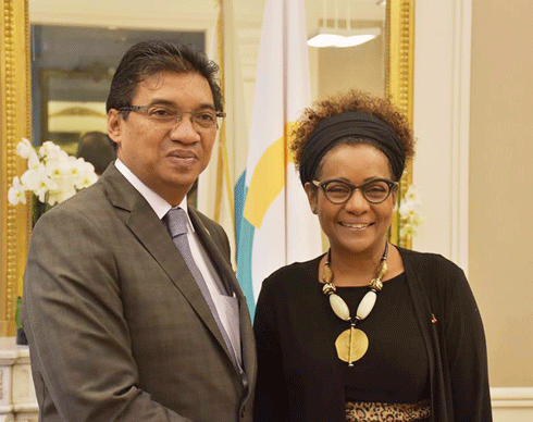 Henri Rabary-Njaka, le ministre malgache des Affaires Etrangères et Michaelle Jean, la Secrétaire générale de la Francophonie.