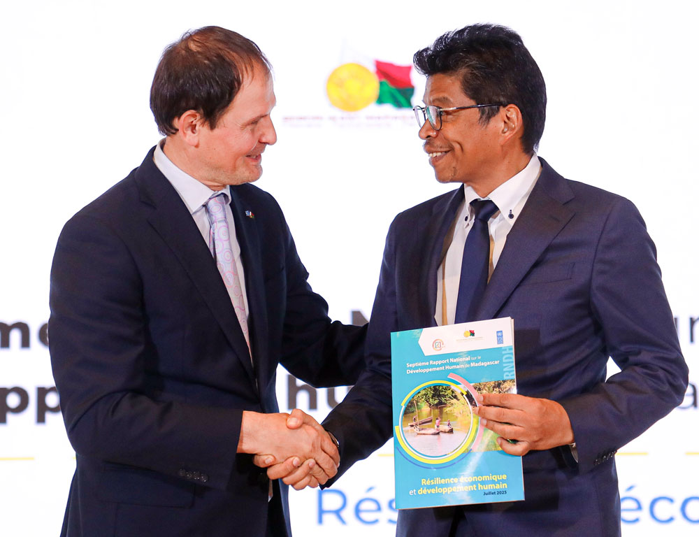 Le rapport rappelle que Madagascar a été confronté à une succession de crises, de la pandémie de Covid-19 aux effets du conflit russo-ukrainien, en passant par les instabilités internes et les aléas climatiques (cyclones, sécheresses). Ces crises ont engendré une croissance fragilisée, une pauvreté plus marquée et des inégalités accentuées. L’IDH progresse légèrement à 0,525 en 2023, mais le pays reste dans la catégorie des États à développement humain bas. Ajusté aux inégalités, l’indice recule à 0,386, soit une perte de 26,5 %, illustrant des avancées qui profitent encore trop inégalement. L’éducation demeure le point le plus critique : en 2022, 34 % des personnes en zone rurale étaient sans instruction, contre 12 % en milieu urbain. Le rapport propose quatre piliers de résilience — autosuffisance alimentaire, industrialisation, protection sociale, économie bleue — et appelle à des réformes sur les infrastructures, la gouvernance et la productivité. Pour le ministre Ramiarison, la méthode doit être partagée. « Nous n’allons pas imposer une politique économique », a-t-il assuré, privilégiant le dialogue avec le secteur privé. Et de rappeler un principe de contrepartie, car les appuis au secteur privé doivent désormais se traduire par des gains de productivité et des créations d’emplois.