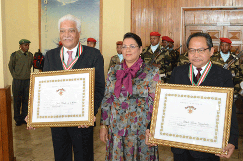 Les deux diplomates recevant hier la reconnaissance du gouvernement malgache.