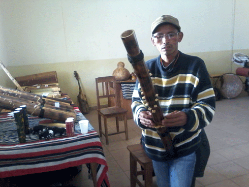 Lorsque sur scène, Rajery parcourt ses doigts (et son avant bras !!! quel talent !!!) sur la valiha, on se laisse emporter par sa musique. Mais on n’a aucune idée de comment cet instrument traditionnel est fabriqué. Car derrière les artistes, il y a les artisans. Rajery travaille étroitement avec ces derniers pour promouvoir cet instrument typiquement malgache. C’est donc du côté du by-pass, à Ifarihy Antsahakely, que Rakotozafy Samuel, plus connu sous son petit nom Samikely, travaille chaque jour le bambou, pour en faire des valiha, et d’autres instruments de musiques typiques et authentiques. « J’utilise le bambou comme matière première. Du bambou qui vient d’Anjozorobe Moramanga, on en trouve encore très bien pour le moment. Puis, pour les mécaniques, j’utilise le voatavo mota. De la peau de zébu à la fois pour le décor, mais aussi pour cacher tout l’assemblage, et des câbles, tout comme pour la guitare, sauf qu’il faut les grands car contrairement aux guitares qui ne comptent que 6 et 7 cordes, la valiha en compte de 17 à 19 ! » explique l’artisan. « Et ce n’est pas tout, je fabrique aussi d’autres instruments de musique. A la base, je faisais des tambours, et des batteries purement fabriqués avec des peaux de zébu tendues. Mais le coût de revient est trop élevé, alors que le marché est incertain. C’est ma rencontre avec Rajery qui m’a fait changer d’avis, me voilà donc à fabriquer des valiha, mais aussi des kaiamba, korintsana rambo, des bâtons de pluie, des marajas voatavo, des tsikadraha… » ajoute-t-il. Son atelier est une véritable expo de découverte d’instruments de musiques typiques. Malheureusement, le marché malgache étant encore trop frêle, Samikely se consacre davantage aux articles destinés à l’exportation.
