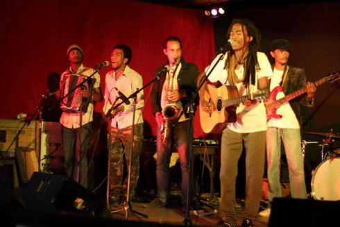 Reggasy et quelques-uns des artistes, lors de l’édition 2014 du fianar reggae festival.