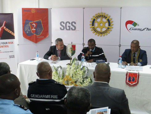 Cette année le message clé du mois de la sécurité est : « Evaluez les risques, Prenez le contrôle ». A noter que la convention a été signée le vendredi 23 septembre 2016 dans l’enceinte de la SGS Madagascar entre le Général de Brigade Manjakavelo Auguste, le Général Lumène Fidèle Rasolofo – Président du Rotary Club Antananarivo Tsimbaroa et Cédric Catheline – Directeur Général du Groupe SGS à Madagascar, pour marquer le lancement officiel de cette campagne nationale. Certains employés de la société se sont déjà portés volontaires pour aider la gendarmerie nationale dans la distribution de ces brochures.