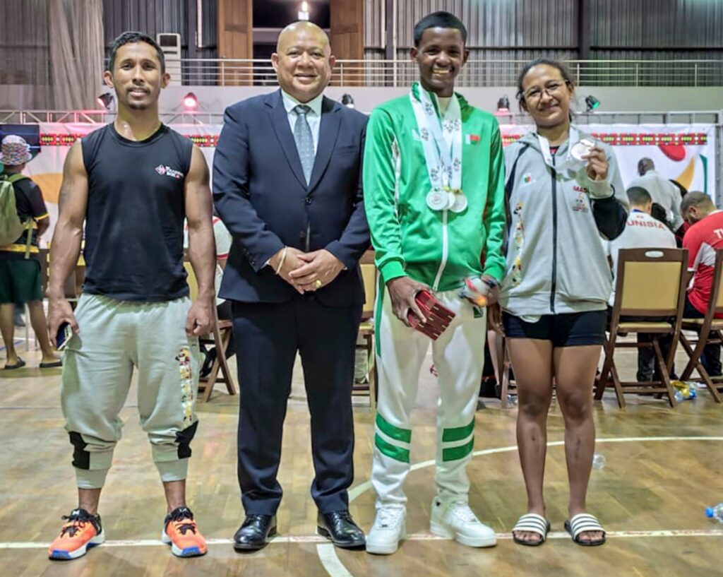 Chez les garçons, dans la catégorie des moins de 56 kg, Onjatiana Herman a réalisé une performance de haut vol en s’adjugeant trois médailles à lui seul. Le jeune athlète a dominé l’épreuve de l’arraché en soulevant une barre à 87 kg, décrochant ainsi sa première médaille d’or. Il ne s’est pas arrêté là. Devancé de peu à l’épaulé-jeté où il remporte la médaille d’argent avec une charge de 102 kg, sa régularité lui a permis de triompher au classement général. Avec un total olympique de 189 kg, il monte sur la plus haute marche du podium et offre une deuxième médaille d’or à la délégation malgache. Du côté des dames, Tendry Tsiky Mahay Tia Rakotomalala a également brillé dans la catégorie des moins de 48 kg. La jeune haltérophile a fait preuve de combativité, notamment sur l’épreuve technique de l’épaulé-jeté. En soulevant une barre de 71 kg, elle s’empare de la médaille d’argent, apportant une précieuse contribution au tableau des médailles. Ces résultats portent le bilan de l’haltérophilie malgache à quatre breloques : deux en or et deux en argent.