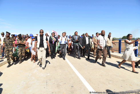 Stabilité. Face aux rumeurs de coup d’Etat qui circulent depuis quelque temps, le Chef de l’Etat ne cesse de réitérer son appel à l’unité et à la solidarité à l’endroit de tous les Malgaches, en vue d’un apaisement et d’une stabilité. Il préfère plutôt mettre en avant la confiance que la Communauté internationale accorde au régime. « Le soutien de la population aux dirigeants constitue une condition importante aux yeux des bailleurs de fonds », a-t-il annoncé. D’ailleurs, le Représentant résident de la Banque Africaine de Développement, Bendjebbour Abdelkrim a déclaré que « cette série d’inaugurations permet de renouveler l’engagement de la BAD, en vue du renforcement de la coopération avec la Grande Ile dans les années à venir ». Pour confirmer sa détermination, Hery Rajaonarimampianina de déclarer : « Ce pont reflète la vision du développement véhiculée par le pouvoir, solide, durable et un héritage pour les générations futures ». Il a toutefois soutenu que le développement ne peut pas se faire dans la précipitation. La patience de la population est de mise. « Le processus nécessite du temps, ne serait-ce que pour les négociations avec les bailleurs de fonds et la mise en œuvre des projets », a rappelé le numéro Un d’Iavoloha. Parmi les nouvelles infrastructures inaugurées hier figure notamment un pont en béton de 234 mètres à Befandriana-Sud, sur la RN9. Un projet financé par la BAD et dont le coût de la réalisation s’élève à 21 milliards. A Bevoay, une nouvelle école composée de 4 salles de classe et de 2 salles pour les enseignants, équipée d’eau et d’électricité a été inaugurée. A Tanandava, le président de la République a assisté à l’évènement « Santa-bary ». A l’occasion, il a remis deux engins pelleteuses et des camions bennes pour les travaux d’entretien du réseau hydro-agricole du Bas-Mangoky.