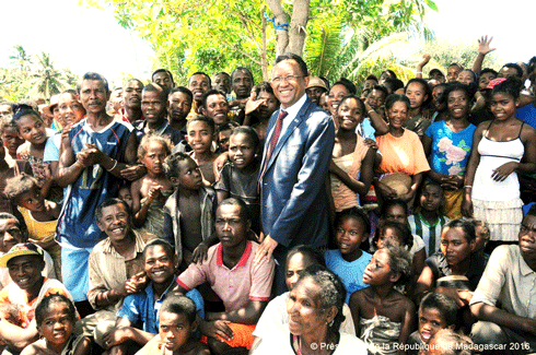 Le mini raid de 35 km de Fort-Dauphin jusqu’à Mahatalaky a épuisé plus d’un et surtout a pu démontrer à toute la délégation officielle, l’état plus que délabré de cette portion de route qui peut arriver jusqu’à Vangaindrano pour les plus courageux. Le président Rajaonarimampianina avec l’ambassadeur de l’Union Européenne Sanchez-Benedito a survolé le parcours en hélicoptère à l’allée. Mahatalaky et ses 17 « fokontany » ont ainsi pu voir et entendre le président leur offrir un lycée avec trois salles, des panneaux solaires, des engagements des enseignants FRAM en tant que fonctionnaire. Le message politique du moment est de s’impliquer dans l’éducation et surtout de montrer à cette population, les ambassadeurs au sein de l’Union Européenne qui nous aident de par leur pays. Par deux fois, les ambassadeurs se sont prêtés au jeu de présentation. Mais ils ont constaté aussi l’effort encore énorme à fournir pour tirer le Sud du gouffre. L’EPP de Mahialambo a pu ainsi avoir une leçon plus que concrète de géographie et de stratégie en voyant tous ces ambassadeurs. « Il nous manque de vrais patriotes qui travaillent réellement pour le pays. Il y a surtout des gens qui font tout pour qu’on se déteste et qu’on n’avance pas » a déclaré le président de la République. « C’est à vous de travailler dur, d’étudier pour devenir des citoyens bons pour votre famille d’abord et pour le pays ensuite ». Zone économique stratégique, cette région verra sa RN12 rénovée en piste prochainement, avec l’ONUDI, il y aura une usine de canne à sucre. Même Sainte-Luce a sorti pour l’occasion une langouste de plus de 5kg.