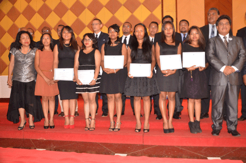 Des étudiants munis de leur diplôme avec le DG de l’IEP David Rajaona. (Photo Yvon RAM)