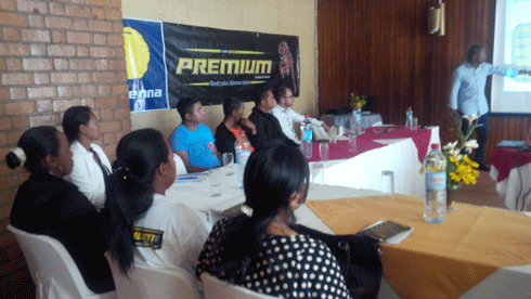 JovennaAprès la journée d’information qui s’est déroulée à Antananarivo, Jesse Ndika, Directeur régional d’Afton Chemical, leader mondial en additifs carburants et fournisseur de Jovenna, a dirigé une séance de travail à Antsirabe, pour évoquer la fiabilité de ses produits. Une fiabilité à la renommée des carburants Premium et qui a contribué à une hausse de la part de marché de Jovenna sur le marché des carburants. Sur notre photo, une partie de l’assistance lors de cette séance à Antsirabe.