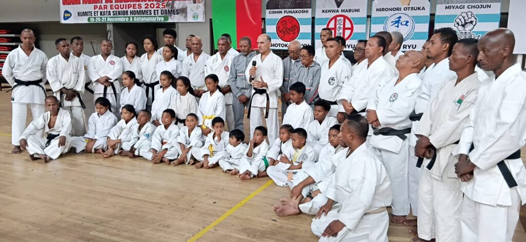 Le Palais des Sports de Mahamasina continue de vibrer au rythme du karaté-do. Ce premier Gasshuku national aura été une édition particulièrement enrichissante. Athlètes, arbitres, coachs et administrateurs y ont trouvé une occasion précieuse de se recycler, de renforcer leurs acquis et de progresser davantage dans la discipline. Pendant trois jours, les quatre grandes écoles à savoir Shotokan, Goju-ryu, Wado-ryu et Shito-ryu, ont été mises en lumière par leurs experts malgaches respectifs. Les participants ont également bénéficié des partages d’expériences des quatre pionniers du karaté-do malgache, Hanshi Jean David Randriamalala, Roger Andrianizahana, Hugues Raharimanantsoa et Ho-Fuh Lone, présents pour l’occasion. Le président de la Fédération malgache de karaté, Émile Ratefinanahary, a officiellement clôturé ce stage technique hier. Dans son allocution, il a annoncé la suite du programme : la première édition du championnat de Madagascar par équipe senior. « Le Gasshuku national sera désormais obligatoire pour les maîtres de salle, les conseillers techniques régionaux, les responsables techniques des sections, les arbitres et les entraîneurs. C’est à travers ce rendez-vous que nous assurerons le recyclage et l’harmonisation du niveau des quatre écoles. Je remercie tous les participants de cette première édition. Vous êtes venus nombreux, même des ligues les plus éloignées, notamment de Fort-Dauphin. Merci pour votre engagement. Mes remerciements vont également aux experts qui ont partagé leurs expériences », a-t-il déclaré. Le président a également rappelé l’obligation pour tous ces acteurs de détenir le Diplôme d’animateur fédéral, dont la troisième promotion débutera en février 2026. Il a aussi souligné que tous les karatékas doivent désormais s’affilier à l’une des quatre écoles reconnues. Après les inscriptions et l’accréditation, la semaine du karaté malgache se poursuit donc avec le championnat de Madagascar par équipe. Les éliminatoires et le repêchage se tiendront samedi, tandis que la finale pour le bronze et la grande finale auront lieu dimanche. La cérémonie de clôture comprendra la remise des trophées ainsi que la distribution des certificats aux candidats ayant validé leur examen lors du Gasshuku.