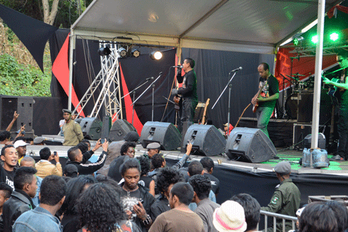 30 ans de vie commune mais toujours aussi épris l’un de l’autre. Dimanche après-midi, Kiaka et son public se sont retrouvés à Antsahamanitra pour célébrer cet évènement qui marque un tournant dans la carrière du groupe. Trente ans de musique et de scène et pas une ride (musicalement parlant). L’arrivée du groupe est chaudement acclamée. Le public est conquis d’avance. « Lay mahantra », « Atolotro anao », « nofy ». Le show fera la part belle à ces titres qui ont marqués ces trente dernières années. Nini alterne les morceaux, oscillant entre folle énergie et moments plus calmes. La communion de Kiaka et de son public crée une jolie dynamique : Nini se lâche sur scène et son public se déchaîne ! Ce dimanche après-midi là, Kiaka nous a proposé un show survolté. On a retrouvé ce groupe engagé aux textes désabusés et aux guitares saturées découvert il y a trente ans. Nini et sa bande nous en mettent plein les yeux, sans oublier les jeux de lumières de grande qualité en fin d’après-midi. Le chanteur se retire parfois pour laisser place au groupe qui se montre au top de sa forme. Jojo, virtuose de la batterie, n’hésite pas à se mettre en retrait pour servir la musique, mais semble tout de même prendre plaisir derrière ses nombreux fûts. Les guitaristes se déchaînent également, offrant au public des prestations magistrales. Kiaka, ce dimanche après-midi là, aura prouvé avoir plus d’une corde à son arc et d’être encore capable de surprendre après tant d’années dans le show business. A ceux qui croient le contraire, non, Kiaka n’entend pas encore décrocher.