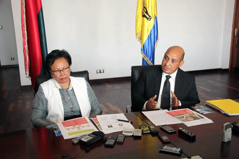 Le maire Lalao Ravalomanana et son deuxième adjoint Julien Andriamorasata devant la presse hier à l’hôtel de ville d’Analakely.