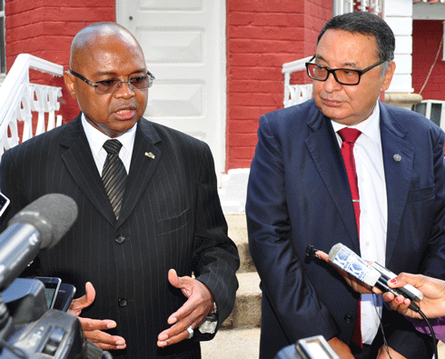 L’ambassadeur russe Stanislav Akhmedov écoutant les explications du Premier ministre Jean Ravelonarivo.