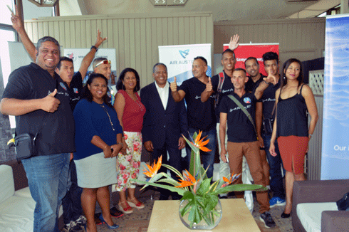 La délégation réunionnaise, avec le ministre du Tourisme Roland Ratsiraka, hier à Ivato.