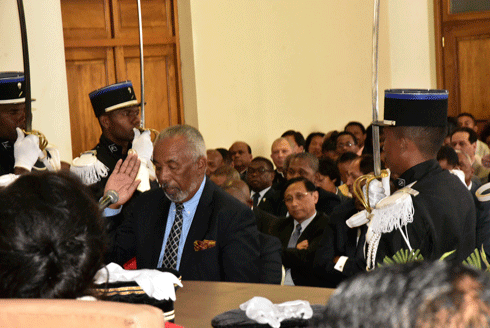 La prestation de serment des 33 nouveaux membres du Conseil du Fampihavanana Malagasy (CFM) s’est tenue, hier, à la grande salle de la Cour suprême, à Anosy. Cette cérémonie a vu la présence des chefs d’Institution, à savoir le Président Hery Rajaonarimampianina, le Premier ministre Mahafaly Olivier Solonandrasana, le président du Sénat Honoré Rakotomanana et le président de l’Assemblée nationale Jean-Max Rakotomamonjy. La présentation du curriculum vitae de chaque membre du CFM a pris largement du temps et qui a été suivie par la prestation de serment des nouveaux membres qui le composent.