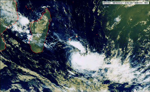 Le cyclone Carlos redevenu tempête tropicale modérée au cours des dernières heures, ne menace désormais plus aucune terre habitée. Du moins, en se référant à sa trajectoire. Hier 10 février 2017, neuvième jour d’activité de ce système, Carlos se trouvait à 1028km des côtes malgaches et continue de s’éloigner, direction sud-ouest.