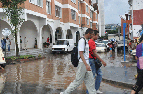 Montée des eaux. La pluie rime avec montée des eaux. Une situation qui est tristement habituelle. Mais qui pourrait être évitée s’il y a la volonté. En effet, avec cette annonce de la tombée des pluies, les bas quartiers vont avoir leur lot de souffrances annuelles où insalubrité, risque d’épidémie, eaux nauséabondes et boueuses se mêlent. Et ce qui s’est passé dans le quartier d’Ampefiloha, d’Andravoahangy, de Besarety et de Petite Vitesse hier en est de bonnes illustrations. L’eau est montée à un certain niveau, jusqu’ à atteindre les genoux des passants. Et encore une fois, les faits prouvent les limites des canaux d’évacuation de la capitale. Des situations tant décriées mais dont les solutions ne semblent pas encore être trouvées.