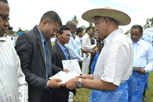 En tout, ce nouveau référentiel sera appliqué dans sept centres de formation éparpillés dans toute l’île. Par ailleurs, cet événement coïncide avec le lancement officiel de la campagne nationale agricole 2015-2016. A cette occasion, le ministre de l’Agriculture a remis 1 500kg de semences de riz, 500kg de semences de mais, 2 charrues, 2 sarcleuses, 2 semoirs et un motoculteur pour le centre CAFPA de Brickaville.