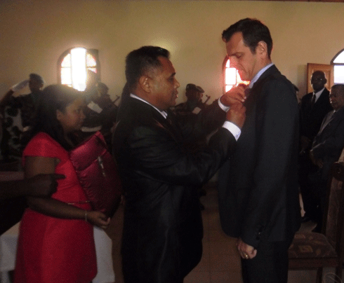 La grande famille du ministère de la Justice s’était réunie hier, pour assister à la cérémonie de remise de décoration de Patrice Comberou, qui a joué le rôle de conseiller spécial du ministre de la Justice, pendant un an et demi. Ce dernier a été donc fait Chevalier de l’Ordre National, en remerciement pour les services qu’il a rendus à l’Etat malgache. S’il a prévu de rester pendant quatre ans dans la Grande Ile, il a dû se résoudre à quitter le pays un peu plus tôt pour des raisons de santé, selon les explications. «Outre les financements que le service auquel il est rattaché a fait bénéficier à Madagascar, il a également réalisé des projets ainsi que des études qui ont pour seul but de rendre la Justice malgache encore plus efficace. D’ailleurs, une évaluation du système judiciaire malgache est au programme pour le mois de juin. Je suis convaincu que cela va donner des résultats positifs », a confié Charles Andriamiseza, garde des Sceaux, ministre de la Justice, lors de la cérémonie.