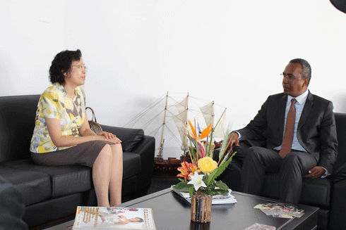 Le ministre de l’Industrie, Narson Rafidimanana recevant l’Ambassadrice de la Chine à Madagascar, SEM. Yang Xiaorong.
