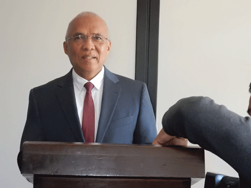 Le ministre des Finances et du Budget, Gervais Rakotoarimanana a fait une déclaration hier à l’hôtel Carlton. (Photo : Kelly R.)