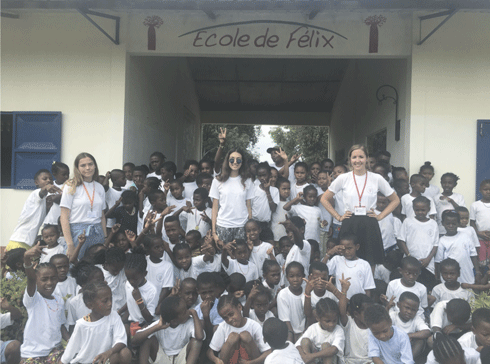 Natasha nous reçoit, entourée de Jessica, de Rollin, de Gabriela et d’une centaine d’enfants. Des enfants de tous âges chantent, jouent, font du sport, s’activent dans des concours de danse endiablée aux rythmes d’HAPPY de Pharell William. La scène est surréaliste, quelle énergie et quelle joie animent ces enfants d’Ampapamena, un village isolé situé à l’ouest du Parc National des Tsingy de l’Ankarana, à quelques encablures du domaine aquacole biologique d’OSO Farming. Natasha nous explique que nous pourrions être sur le campus d’une université américaine rodée aux animations estivales de leurs étudiants tant l’ambiance est festive et le rythme des activités soutenu. En réalité nous sommes bien dans l’Ankarana, aux pieds des sublimes Tsingy, à l’Ecole de Félix, une magnifique infrastructure dédiée à l’éducation de ces enfants déshérités primo-accédant à l’éducation.