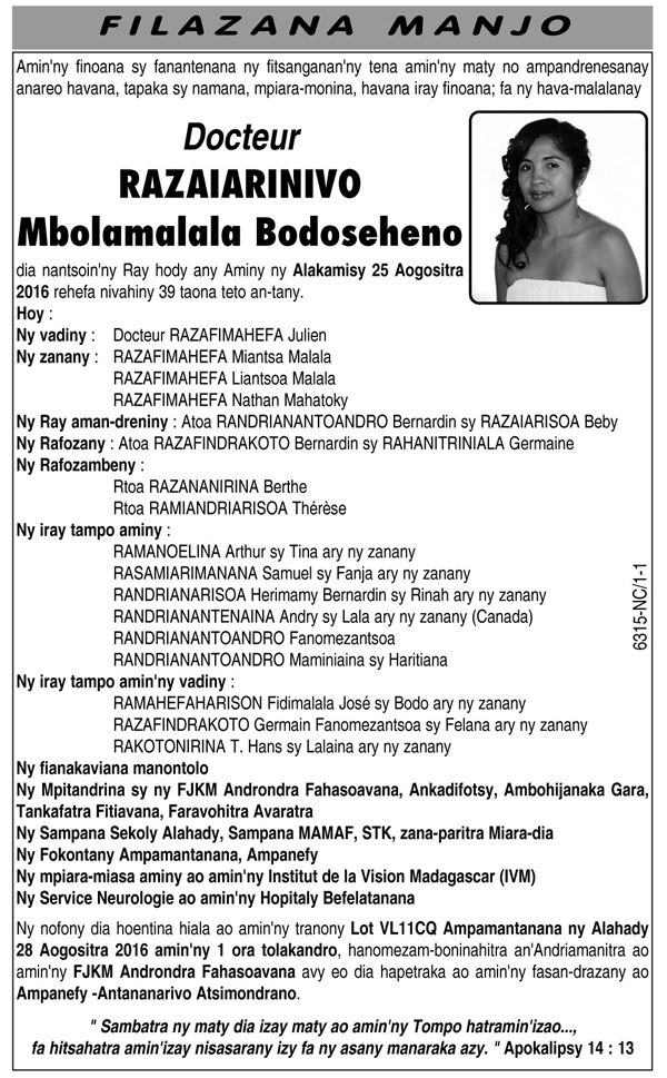AccueilNécrologieNécrologie du 27 août 2016 Nécrologie 27 août 2016 Nécrologie du 27 août 2016 Temps de lecture : Moins de 1 min. Partager FacebookTwitterPinterestWhatsApp Vous souhaitez accéder aux journaux Midi et Gazetiko entiers en PDF ? Cliquez ici - Publicité - - Publicité - Suivez nous 419,278FansJ'aime14,461SuiveursSuivre5,417SuiveursSuivre1,920AbonnésS'abonner Articles qui pourraient vous intéresser LAISSER UN COMMENTAIRE Annuler la réponse Commenter : S'il vous plaît entrez votre commentaire! Nom :* S'il vous plaît entrez votre nom ici Email :* Vous avez entré une adresse email incorrecte! Veuillez entrer votre adresse email ici Site : Enregistrer mon nom, email et site web dans ce navigateur pour la prochaine fois que je commenterai. Δ